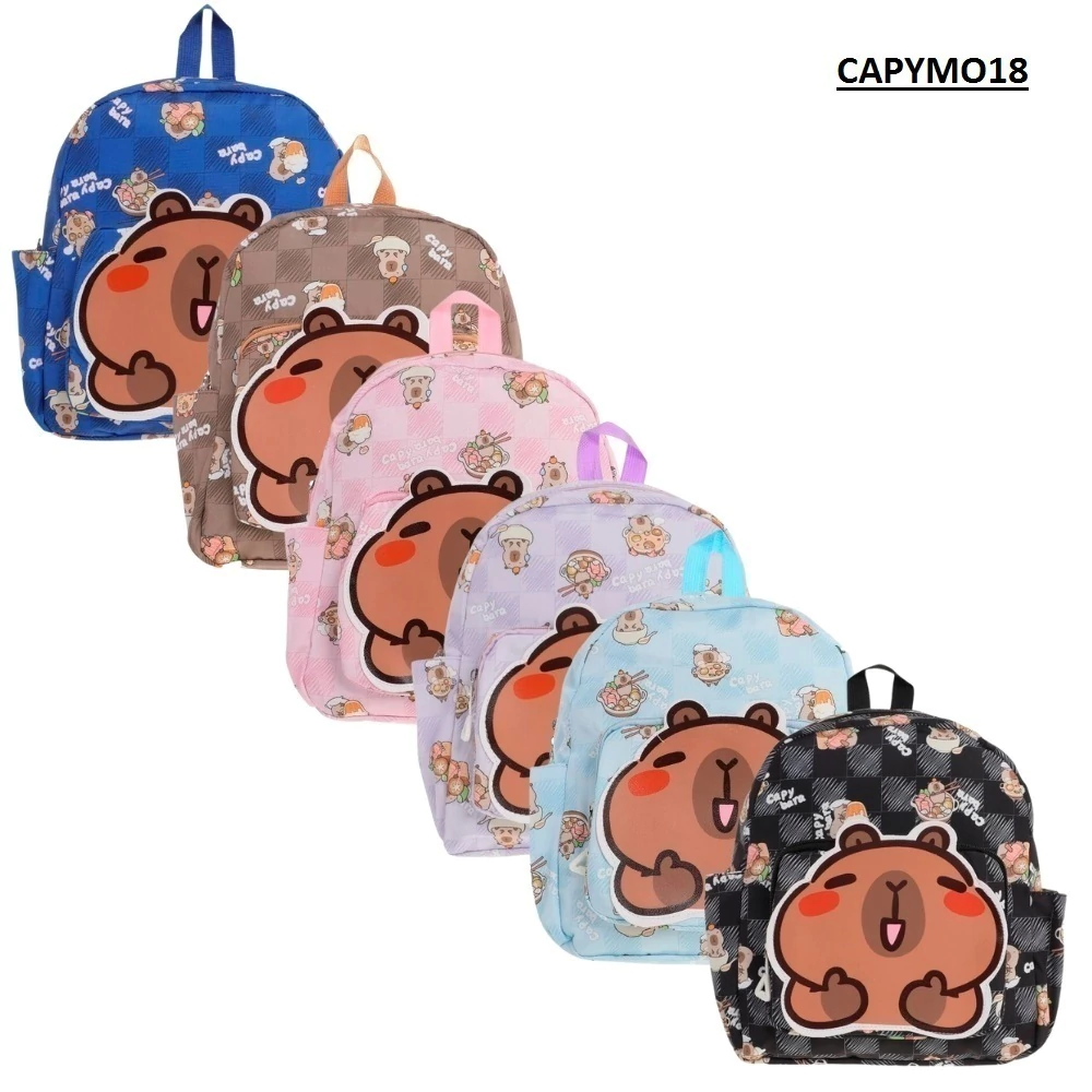 MOCHILA INFANTIL 13” - MODELO CAPYM018 MOCHILA LIVIANA CON ESTAMPADOS DE CAPYBARA Y DISEÑO INFANTIL, IDEAL PARA JARDÍN O SALIDAS CORTAS. CONFECCIONADA EN POLIÉSTER Y DISPONIBLE EN VARIOS COLORES.